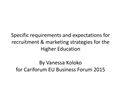Specific Requirements & Expectations for Recruitment & Marketing Strategies for the Higher Education